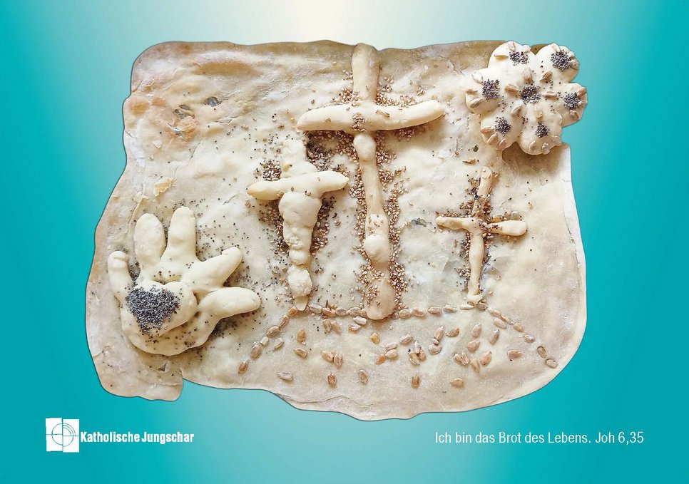 Das Motiv für die Kärtchen wird dabei immer von einer anderen Diözese übernommen. Das heurige Bild kommt von Jungscharkindern aus der Pfarre Breitenfurt- St. Bonifaz aus Niederösterreich in der Erzdiözese Wien. Die Gruppen unterschiedlicher Altersstufen haben sich hierfür zusammengetan, um herauszufinden, was die Worte Jesu „Ich bin das Brot des Lebens“ [Johannes 6,35] für sie bedeuten könnten.